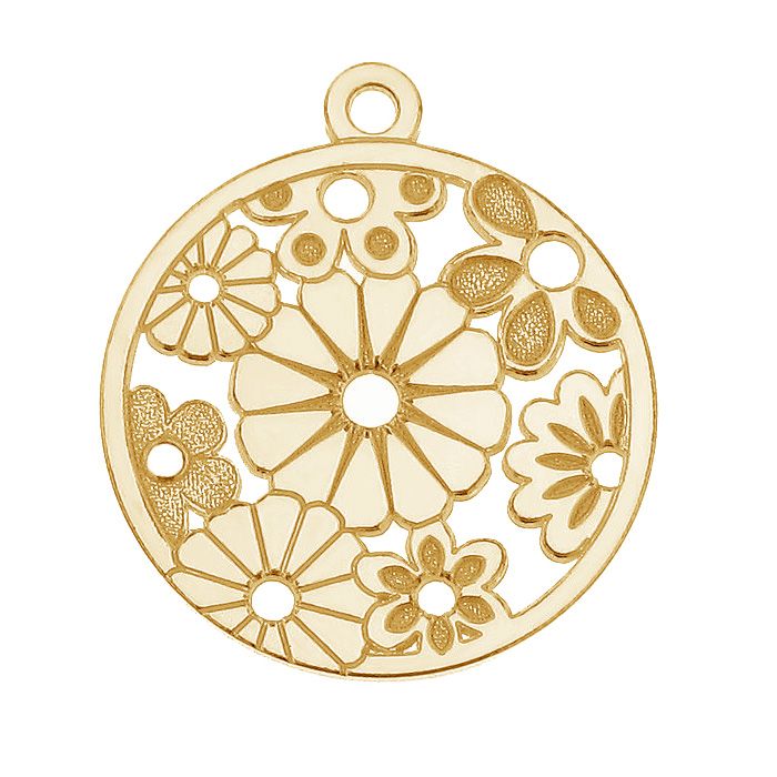 Round pendant - flowers, sterling silver 925, LK-0483 0,50 15x17,1 mm