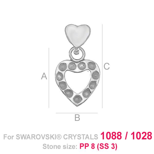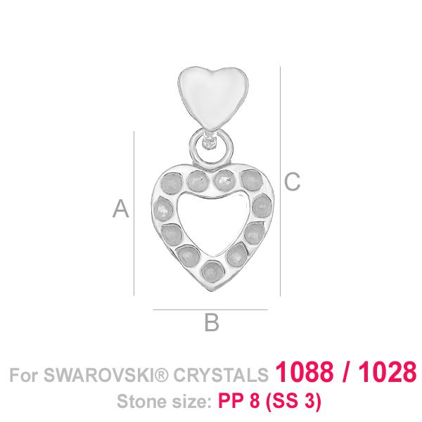 A=10,50 mm; B=10,00 mm; C=18,00 mm, sterling silver (AG-925)