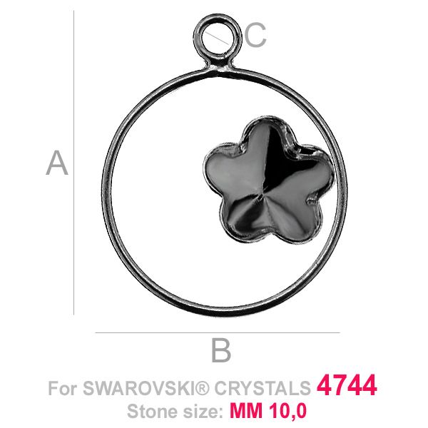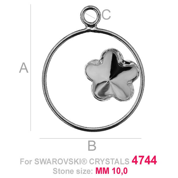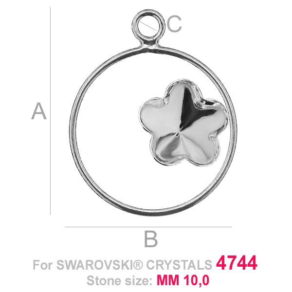 Pendant - base for Flower Fancy in circle 4744 10 MM, sterling silver 925