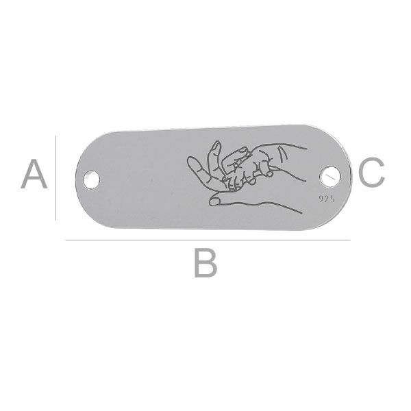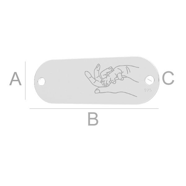 A=8,00 mm; B=23,00 mm; C=1,50 mm, sterling silver (AG-925)