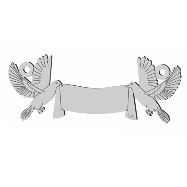 Wedding pigeons pendant connector, sterling silver 925, LK-1366 - 0,50