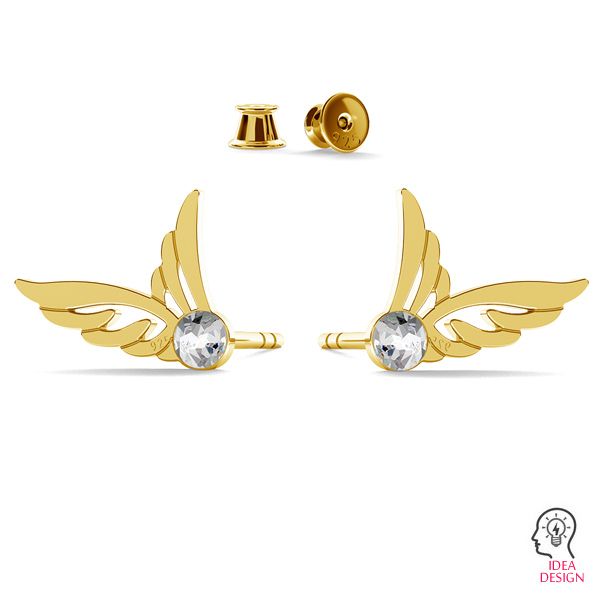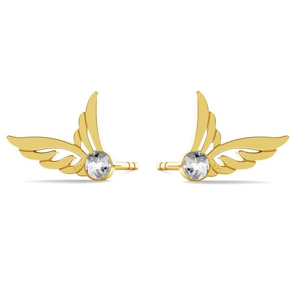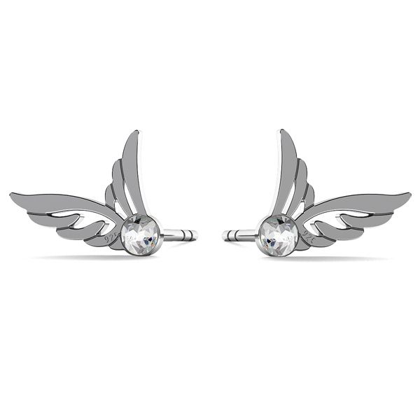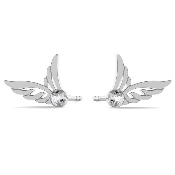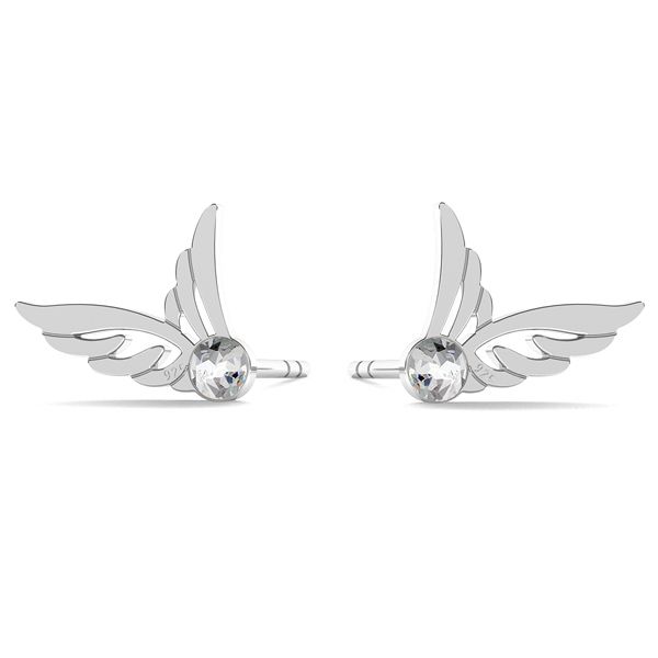 Stud earring - wings with SW crystal, sterling silver 925