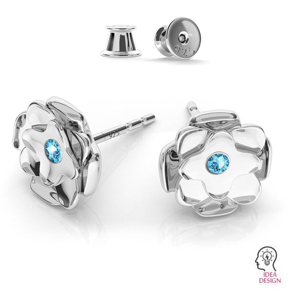 Stud earring - rose - base for SW 1088 PP 16 crystal, sterling silver 925