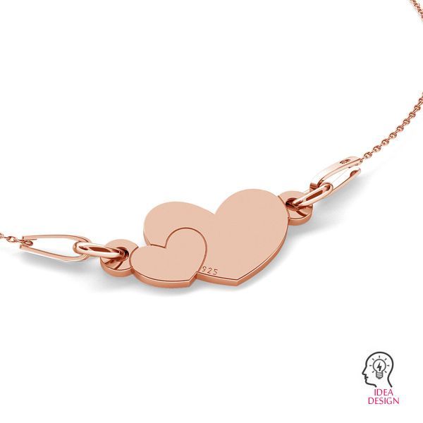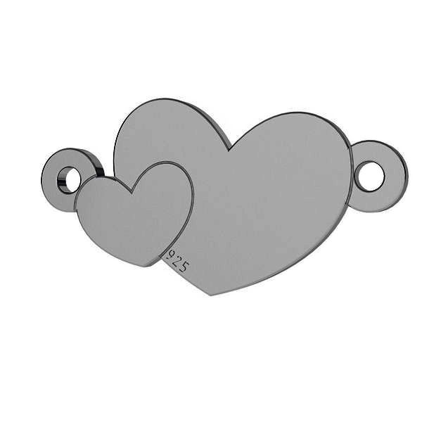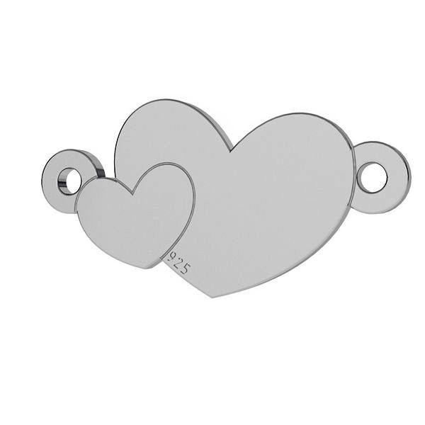 Double heart pendant connector tag, sterling silver, LKM-2037 - 0,50