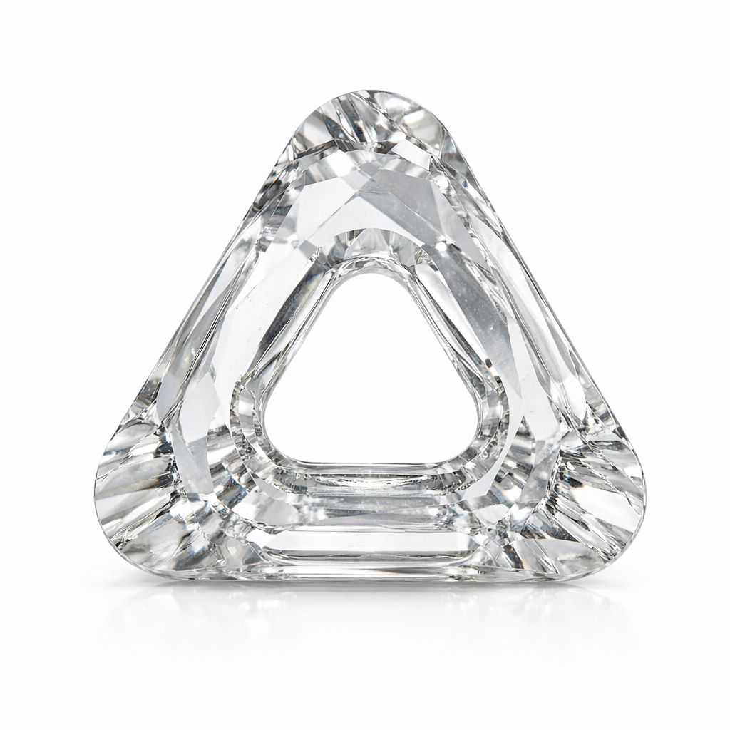 Triangular Swarovski stone with a size of 30.0 mm in Crystal color. Model 4737 features a central hole, allowing it to be used as a decorative or jewelry element. The geometric shape and transparent color make it suitable for jewelry, accessories, and decorative applications.