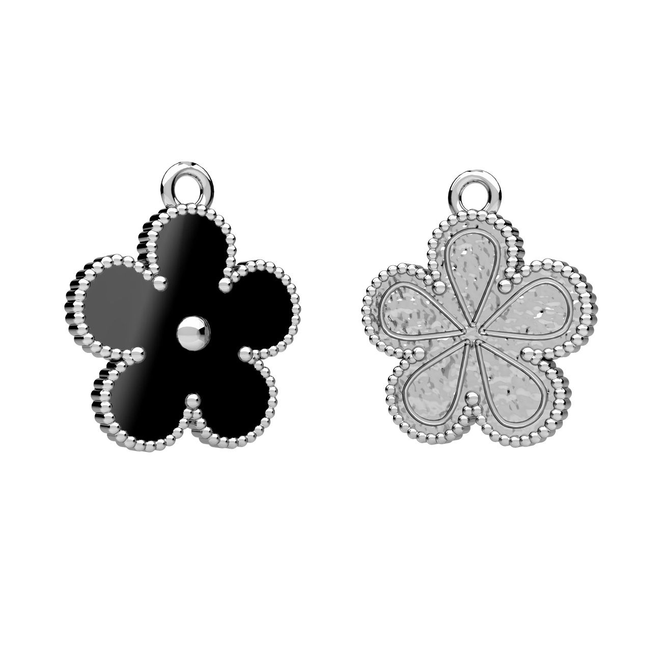 Flower pendant, black resin, sterling silver