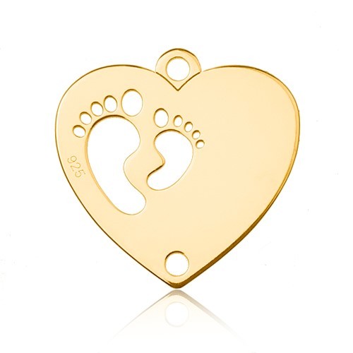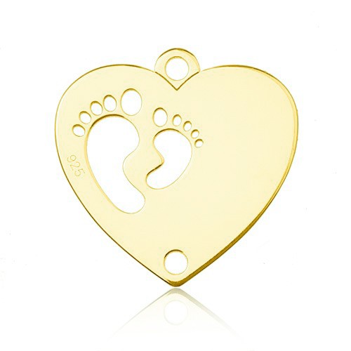 Connector pendant - heart with baby feet for engraving, sterling silver AG 925