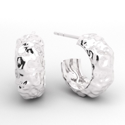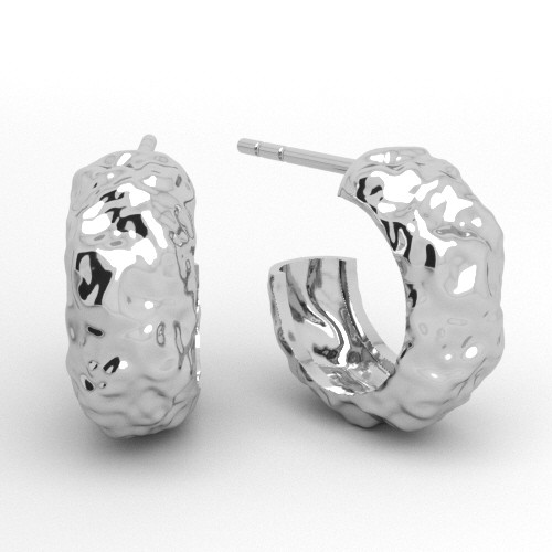 Stud earring - small circles with a wavy surface, sterling silver AG 925