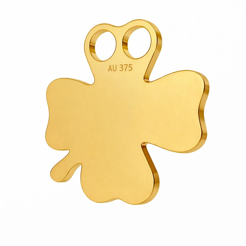 The clover connector made of AU 375 gold is a subtle jewelry component with positive symbolism. The lucky motif suits personalized, lightweight, and modern jewelry designs.