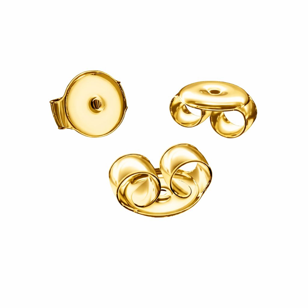 Butterfly earring back is a practical component used with stud earrings. Made of brass, it features a spring construction that keeps the earring securely in place. Its classic shape fits most jewelry designs. Ideal for jewelry making and earring repairs.